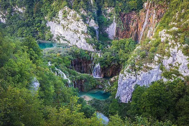 Patrimonio UNESCO, le Cascate di Plitvice si trovano all’interno del Parco Nazionale dei Laghi di Plitvice, il primo parco nazionale croato fondato nel 1949. Nel territorio, nel 1991 ci fu uno scontro fra forze croate e serbe, durante quella che è nota come la Pasqua di Sangue di Plitvice. Le cascate creano ben 16 laghi (suddivisi in laghi superiori e laghi inferiori), collegati da fiumi e ruscelli.