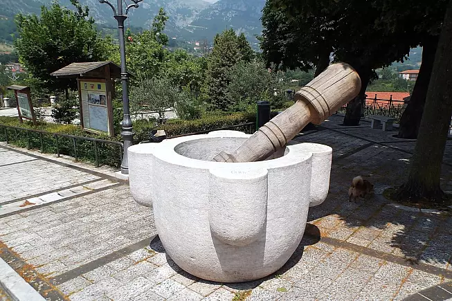 La lavorazione della pietra cusanese estratta in località Calvario è stata persino oggetto di studi insieme a quella delle cave di Pietraroja! Grazie alla lavorazione di questo materiale il borgo ha conquistato il Guinness dei primati con il suo mortaio gigante. Ma questo non è l’unico record.