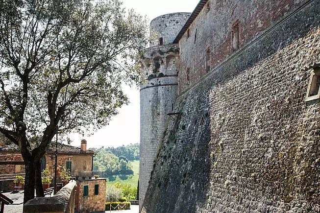 Siamo al confine tra la Val d’Orcia e le Crete senesi, il paesaggio delle colline avvolge il borgo toscano circondandolo con vigneti e oliveti.