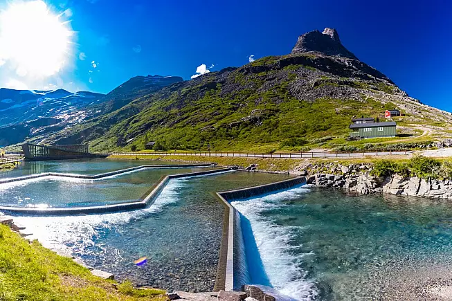 È composta da 11 tornanti che si snodano per 106 chilometri, la maggior parte a una sola corsia. Tutt’intorno alla strada principale si elevano alte montagne, che hanno nomi simbolici e accattivanti, come Kongen (il Re), Dronningen (la Regina) e Bispen (il Vescovo), per la loro imponenza. Il paesaggio offre innumerevoli scenari fiabeschi. A Ørnesvingen, per esempio, potete godervi la magnifica cascata “De syv Søstrene” (“le sette sorelle“), la fattoria alpina di Knivsflå e il più famoso fiordo al mondo, il Geirangerfjorden. Generalmente, la strada è chiusa da fine autunno a primavera inoltrata. Lungo il cammino, si incontrano simpatici segnali che, invece di un cervo o daino, hanno la sagoma di un troll e varie sculture sparse, dedicate a questi mostri mitologici.