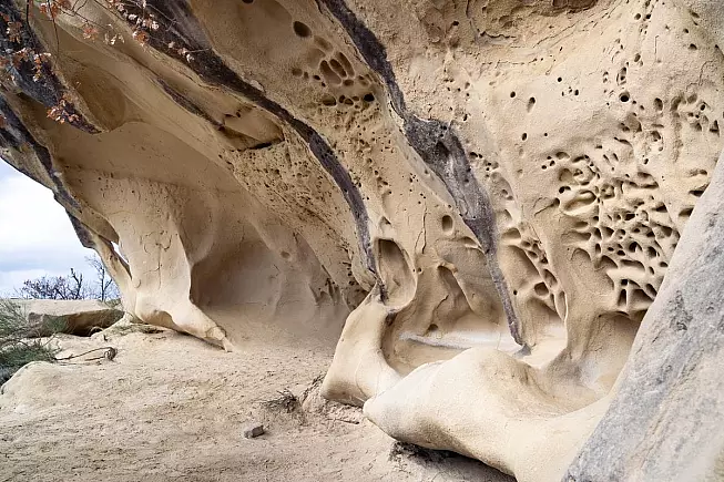 L’arenaria, la protagonista indiscussa di questo spettacolo geologico, sembra essere stata scolpita da un’arte celeste. Le pareti delle grotte mostrano incisioni millenarie, segni di una danza perpetua tra la terra e il cielo. La sabbia bianca, finemente distribuita sul terreno, completa l’atmosfera lunare che avvolge questo luogo incantato. La magia delle Grotte di Soprasasso non risiede solo nella loro bellezza visiva, ma anche nella storia che ripercorre i millenni.
