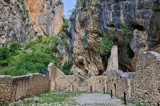 Ma che cosa possiamo vedere oggi? Ciò che è rimasto è un affascinante rudere che mostra un cancello che si apriva verso il cortile, il cui perimetro era segnato da un portico con tre arcate. Sul versante nord possiamo immaginare ancora lo splendore che, un tempo, rivestiva il campanile a vela. La chiesa del monastero di San Martino era composta da ben tre navate; quella settentrionale e quella centrale erano divise da un muro che presentava tre arcate. Sulle rovine di quel muro un timido velo ci rivela la presenza di antichi affreschi. Possiamo ancora vedere chiaramente i resti dei gradini in pietra dove sedeva il coro. Il fulcro della chiesa era scavato nella roccia, che fa pensare a una sua possibile funzione di eremo. La posizione tra le Gole di Fara San Martino rende questa struttura ancora più misteriosa, avvolta da un’aura magica che lascia a bocca aperta. Per immortalare la bellezza del luogo, consigliamo di portare una fotocamera durante la visita.