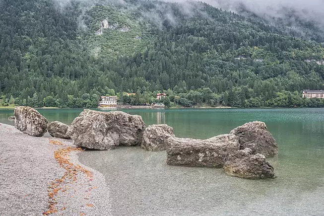 Parcheggiate nei pressi dell’abitato e seguite le indicazioni per il lago. Una volta sulla spiaggia, percorretela verso sud, fino a un ponticello che immette direttamente al sentiero. Sulla sponda occidentale del lago, il sentiero rimane nascosto tra gli alberi, ma offre incredibili scorci sullo specchio d’acqua. Attraversato il ponte romano in corrispondenza della cascatella del Rio Ceda, arrivate alla località Dos Corno. Un bivio porta da un lato verso le rovine dei Fortini di Napoleone, dall’altro verso l’omonimo ristorante.