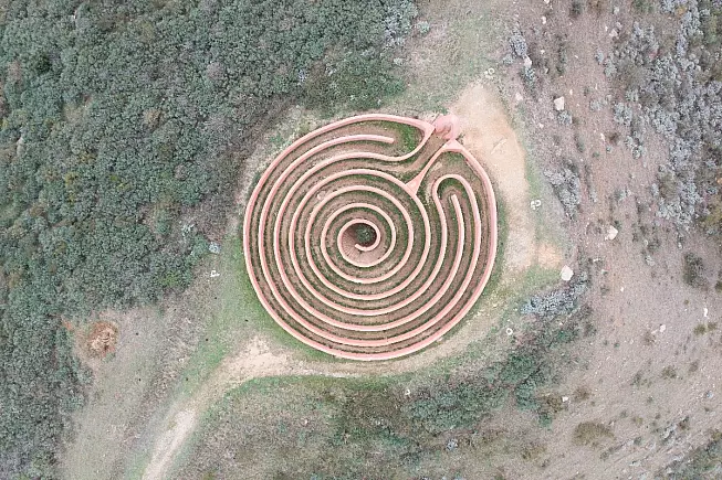Il labirinto è in realtà un dedalo che si snoda lungo la parte sommitale di una collina e che culmina al centro di esso; percorrendolo in senso inverso, si potrà tornare al punto di partenza. La forma a “spirale” ha una profonda simbologia, perché accompagna l’escursionista a fare un viaggio anche introspettivo dentro di sé.