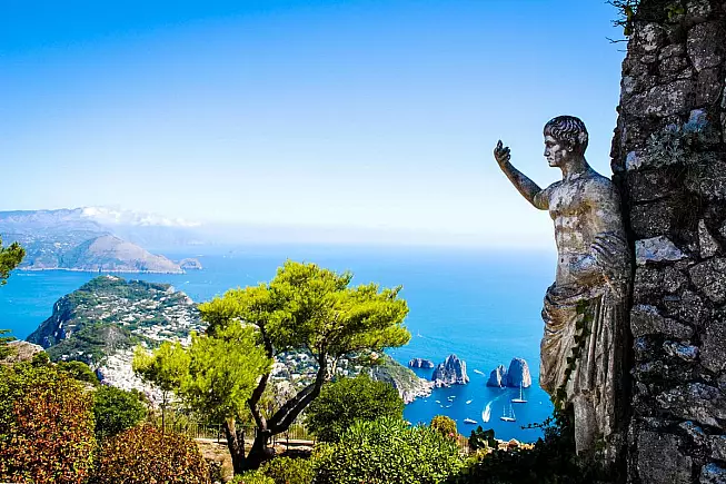 L’isola di Capri ha affascinato gli uomini di qualsiasi epoca. Prova di questo è la numerosa quantità di ville fatte costruire sull’isola dall’imperatore Tiberio, erede del primo imperatore romano Ottaviano Augusto. Villa Jovis è quella che si è conservata meglio; per visitarla, si parte dalla Piazzetta per salire verso via Longano e poi via Sopramonte. Da qui, dopo una ripida salita, si giunge ai ruderi della struttura imperiale, i cui resti permettono di intuire la magnificenza della struttura che domina l’intero promontorio di Monte Tiberio, non solo pensata come un luogo di svago ma anche come un’attestazione difensiva.