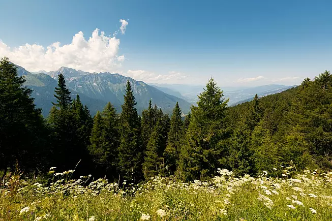 Da Sardagna, piccolo paese affacciato su Trento, parte un anello che sale verso Coel e Candriai. Il sentiero attraversa boschi di faggi e castagni dove, in ottobre, le foglie si accendono di giallo e arancio. L’atmosfera è calma, quasi sospesa, e a ogni curva si apre una vista diversa sulla valle.