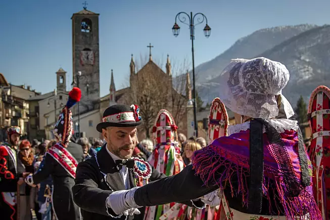 Abbiamo usato il termine carnevale, ma non è corretto, è la Baìo, la cui storia è molto antica e affascinante. La parola baìo deriva dall’occitano e significa Badia, abbazia, non in senso religioso quanto nel significato di unione, associazione, per lo più di giovani che organizzavano feste comunitarie. Con questo termine ci si riferisce sia alla festa sia a chi vi partecipa. L’evento si svolge ogni cinque anni e i partecipanti sono esclusivamente di sesso maschile, anche per i ruoli femminili.