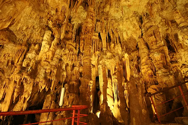 L’itinerario turistico parte dal ramo inferiore, il più breve ma forse il più suggestivo con la sua “sala del lago Blu”, dove risuona tutto il fragore del torrente Fosso Mastro quando le piogge aumentano la sua portata. La visita del ramo attivo termina con la “sala dell’Occhialone”, tutto il resto del tratto è percorribile solo da speleologi e ricercatori. Si ritorna così suoi propri passi e si inizia la visita al ramo fossile percorrendo il “corridoio Franchetti” (dal nome dello scopritore delle grotte), ricco di concrezioni minerali ed una stupefacente colata di calcite. Da qui una serie di sale, una dietro l’altra, ognuna con un nome suggestivo che fa volare lontano la fantasia. La “sala del salice piangente” per via della forma di una colonna; la “sala dei pipistrelli”, un tempo abitata dai piccoli mammiferi notturni. Si continua con la “sala delle diramazioni”, quella “delle meraviglie” dove qui una delle rocce ricorda la testa di un elefante di color avorio. Nella “sala delle colonne”, invece, tanti pilastri creatisi dall’unione delle stalattiti alle stalagmiti. Ultimo step quella della “sala del Monte Calvario”, dove si possono ammirare stalagmiti che sembrano raffigurare le tre Croci, proprio come sul Monte Calvario.