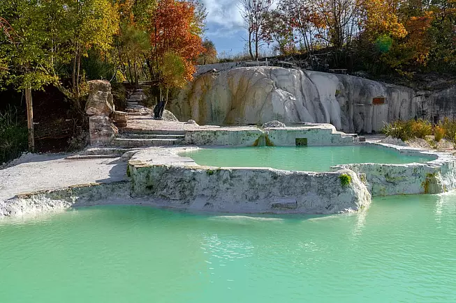 Si segue il percorso che conduce al Fosso Bianco, un torrente immerso nel bosco, tra sorgenti e cascatelle di acqua calda e pozze di varia dimensione, vere e proprie piscine naturali. Da qui, ci si immerge in un ambiente davvero speciale, con l’alternarsi del bianco e del verde della vegetazione circostante, fino a giungere alla cascata della Balena Bianca, enorme blocco di calcare formato dai sedimenti delle bianche acque ipertermali.