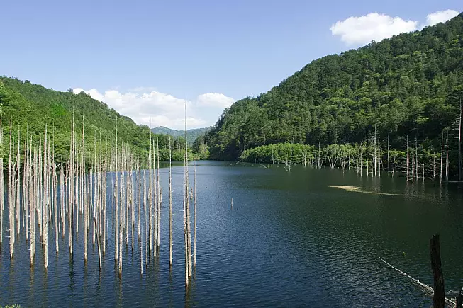 Chi, invece, predilige luoghi più remoti e inconsueti può avventurarsi lungo l’affascinante lago Shizenko. Basta prendere da Tokyo il treno per Kiso Fukushima e raggiungere in autobus il villaggio di Otaki. Qui si rimane incantati di fronte a una straordinaria opera della natura: una schiera di tronchi d’albero si innalzano dal fondale come fantasmi, per metà sommersi dalle acque del lago, formatosi nel 1984 in seguito a un sisma.