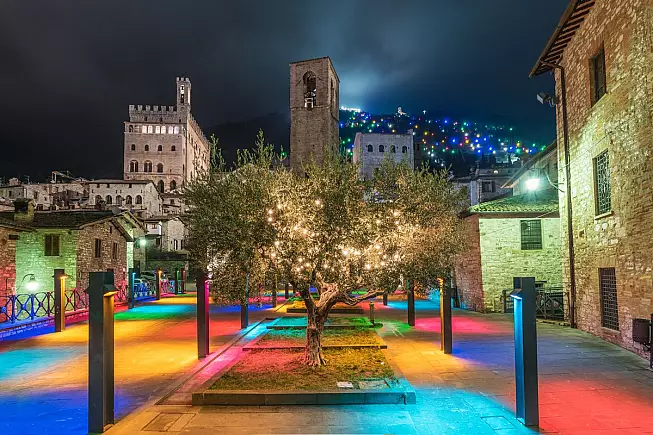Lo sapevi che in Umbria esiste l’albero di Natale più grande al mondo? Si trova a Gubbio, il meraviglioso borgo medievale famoso non solo per il suo patrimonio storico e artistico, ma anche per un’incredibile tradizione natalizia. Con i suoi circa 750 metri di altezza, l’Albero di Natale di Gubbio adorna dal 1981 la montagna che lo ospita, il Monte Ingino.