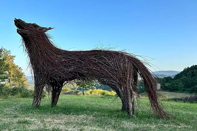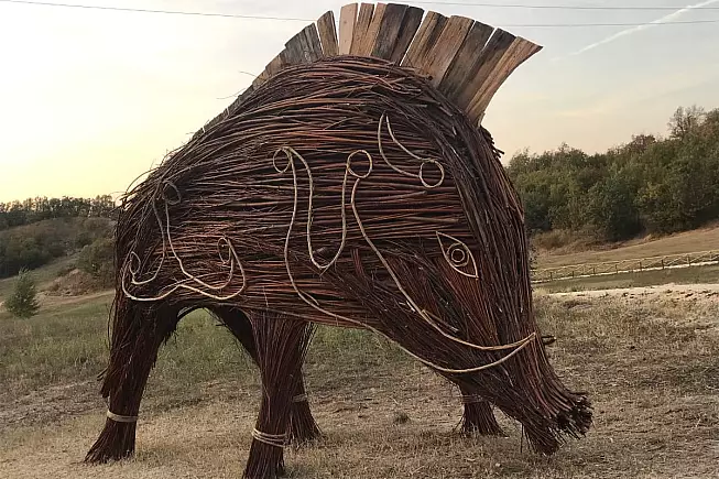 Attraversa il Parco Archeologico di Monte Bibele, centro di conoscenza delle culture celtiche ed etrusche. Opere: Cinghiale Celtico, Pioggia Sonora.