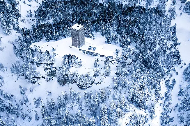 La Torre del Belvedere è il simbolo del Passo della Maloja: qui in estate vengono allestite mostre ed esposizioni, ma anche in inverno merita di essere raggiunta attraverso la neve per i panorami mozzafiato che offre. La Torre si trova infatti su un fotogenico sperone roccioso dell’altopiano dell’Engadina che si affaccia sulla Valle Bregaglia offrendo alcuni degli scorci più belli dell’intera valle.