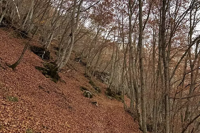 Si parte dal borgo di Scanno, luogo perfetto per parcheggiare l’auto e intraprendere il Sentiero del Cuore. Subito dopo essere usciti dal borgo ci sono le indicazioni per iniziare il percorso e la storia, più che dettagliate del Lago di Scanno. Il bosco si manifesta subito nella sua veste autunnale, con un bellissimo manto di foglie coloro bronzo a terra a rendere il tutto ancor più spettacolare. Nella prima parte del percorso la vista sul Cimitero di Scanno non è delle migliori, ma chissà qualcuno potrebbe esserne affascinato, non giudichiamo i gusti.