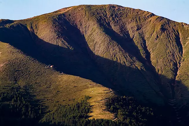 Quando si entra nel bosco la strada inizia a farsi sterrata e, soprattutto, più in salita. Da questo momento l’ascesa sarà continua e con pendenze in costante aumento, fino ad arrivare all’ultimo tratto – poco meno di due chilometri – dove si arriva a sfiorare anche il 30%. Si cammina all’ombra del bosco, con alcuni squarci che permettono di ammirare la valle sottostante. Quando si esce dal bosco inizia il tratto più impegnativo, con anche il paesaggio che cambia radicalmente: si aprono ampi pendii erbosi alpini e il panorama si allarga fino a comprendere le prime viste sulle Dolomiti.