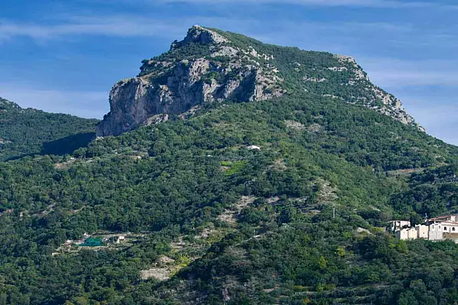Proseguendo il cammino cambia l’ambiente circostante: dai caratteristici terrazzamenti agricoli sostenuti da muretti a secco ci si addentra nel bosco caratterizzato da lecci, castagni e corbezzoli, una manna per gli amanti della macchia mediterranea. Come la strada inizia a rimpianare ecco che si arriva alla Sella del Monte Falerio posta a quota 546 metri di altitudine: qui l’orizzonte si fa ancora più ampio, aprendosi verso l’interno dei Monti Lattari e regalando una sensazione di isolamento e silenzio che in qualche modo cozza con la folla della Costiera.