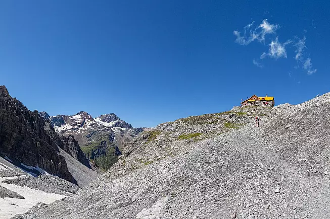 Dopo aver superato diversi punti panoramici che ci offrono una vista stupefacente sia sul Gran Zebrù che sull’omonimo Passo e sulla Baita del Pastore, iniziamo a vedere i caratteristici tetti gialli del rifugio. Dal nostro punto di partenza la distanza complessiva fino al rifugio è di circa 3 km; qui ci accoglieranno un clima familiare e la tipica cucina valtellinese che ci farà venire voglia di fermarci anche per la notte, ammirando il paesaggio con la magica luce del tramonto.