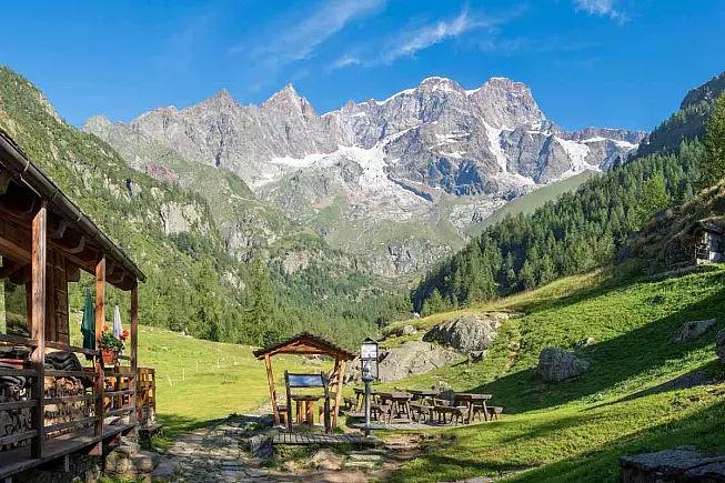 Superato lo strappo lungo circa 500 metri e dove un’oretta di cammino, ecco che si arriva al Rifugio Pastore. Qui una pausa è d’obbligo, magari per approfittare del servizio ristoro con piatti tipici montani – polenta, formaggi d’alpeggio e salumi locali – e degli ampi spazi esterni panoramici. La posizione del resto è straordinaria: dalla terrazza si gode una vista aperta sulla testata della valle e sulle cime che fanno da anticamera al Monte Rosa. Per gli amanti della fotografia è il posto ideale per fare degli scatti da custodire poi con gelosia.