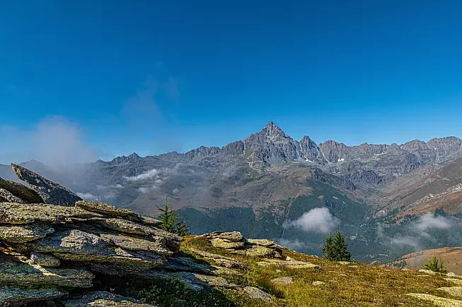 Il percorso continua verso la zona di Pian Ciarm, un pianoro erboso ideale per una pausa, dove si abbandona la sterrata per imboccare una traccia che sale abbastanza decisa su una costa di pratia. Una volta ripartiti, si attraversano alcuni pascoli e ghiaioni e, guadagnando gradualmente quota, si raggiunge la Punta Selassa (2.037 metri), con il suo punto panoramico che dona generose viste sul Monviso e sulla Valle Po.