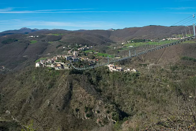 Inaugurato nel 2024, il Ponte Tibetano di Sellano è lungo 517 metri ed è sopseso a 175 metri di altezza sopra la Valle del fiume Vigi: percorrerlo sarà una vera e propria esperienza adrenalinica che vi regalerà emozioni indimenticabili.