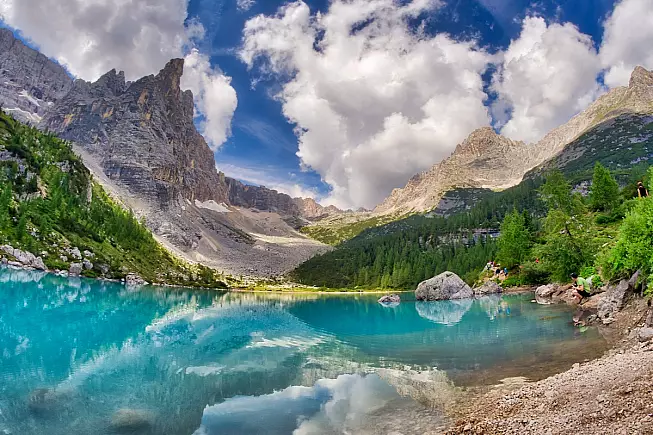 Incastonato tra vette meravigliose, il Lago di Sorapis attrare ogni anni folle di turisti che, nei mesi più caldi dell’estate, rendono molto frequentato questo itinerario. Le sue acque vantano un colore unico, dovuto sia a motivazioni geologiche che alla rifrazione particolare della luce. Naturalmente di origine glaciale, raccoglie le acque di scioglimento dell’omonimo ghiacciaio, e tutti i sedimenti dolomiti trasportati con essa. Proprio in estate, durante il massimo scioglimenti del ghiacciaio, il lago accoglie una maggiore quantità di polvere minerale che, restando in superficie, riflette la luce con incredibili gradazioni di blu.